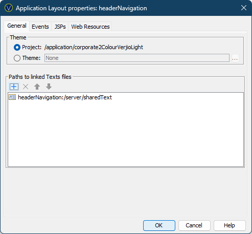 Associate this Application Layout with the Project’s Theme. The Project’s Theme is configured in the Project’s properties. If the Project’s properties are changed it is automatically updated here. |
