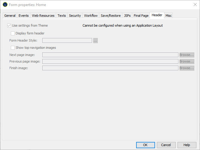The following properties are available in the Header tab of the Form Properties dialog.